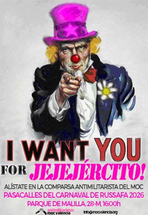 Bon dia! Enguany la nostra comparsa antimilitarista torna al carnestoltes de Russafa i et convidem a desfilar amb nosaltres dissabte 28 de març a la vesprada. Ajuda'ns a impedir que el ninot gegant de quatre metres que traurem a passejar,...