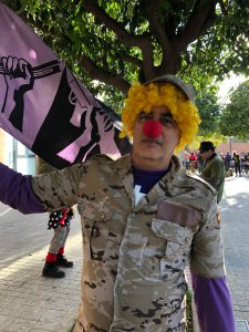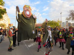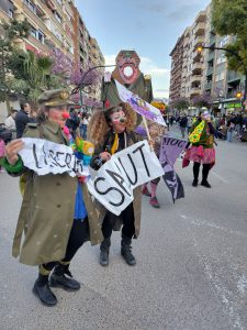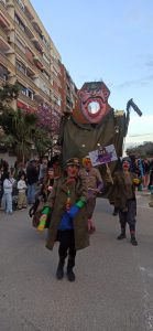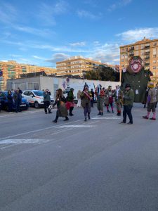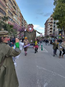 Els militars i polítics militaristes adoren les desfilades marcials però les pallasses rebels del Xexexèrcit/Jejejército del MOC adoren les cercaviles de Carnaval. Ahir una ampla unitat del nostre estimat cos antimilitar va irrompre al Carnaval de Russafa 2026 amb la missió de tallar el pas i tombar al gegant Don Rearme Guerra Segura i evitar que aquest sangonera devorara tot els béns comuns i recursos públics, amb l’ajuda del seu al·liat inestimable, el capitalisme neoliberal.
